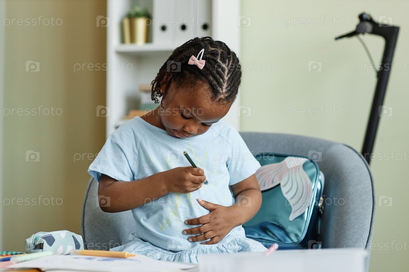 Черный маленький ребенок рисует на рубашке