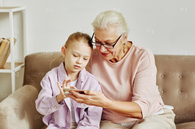 Женщина, использующая смартфон с маленькой старшей девочкой