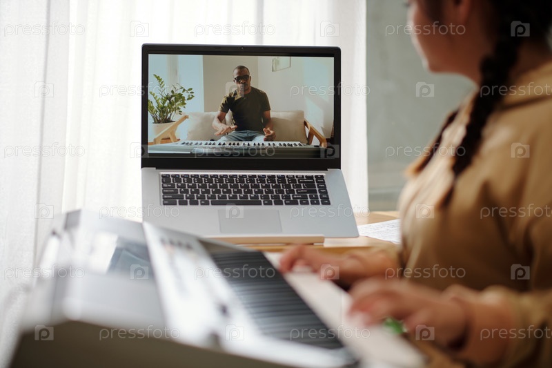 Девушка, следующая уроку синтезатора