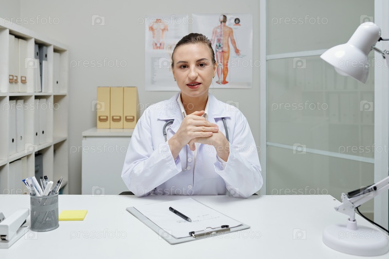 Врач, работающий за столом
