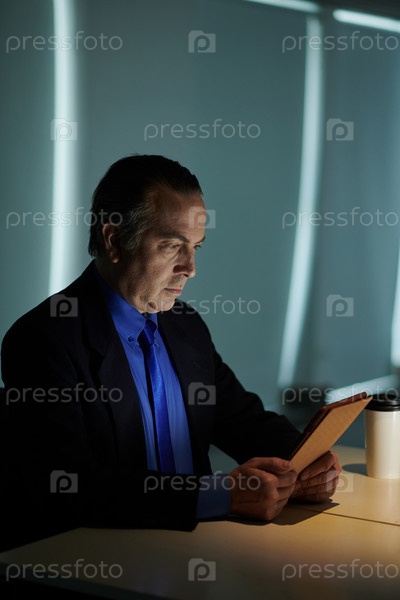 Зрелый бизнесмен читает статью
