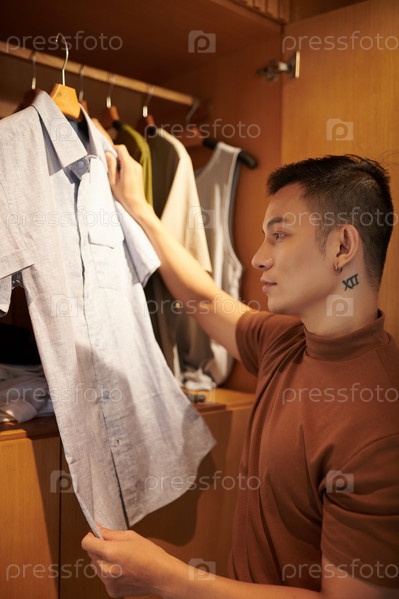 Мужчина, который выбирает носить рубашку из органического хлопка