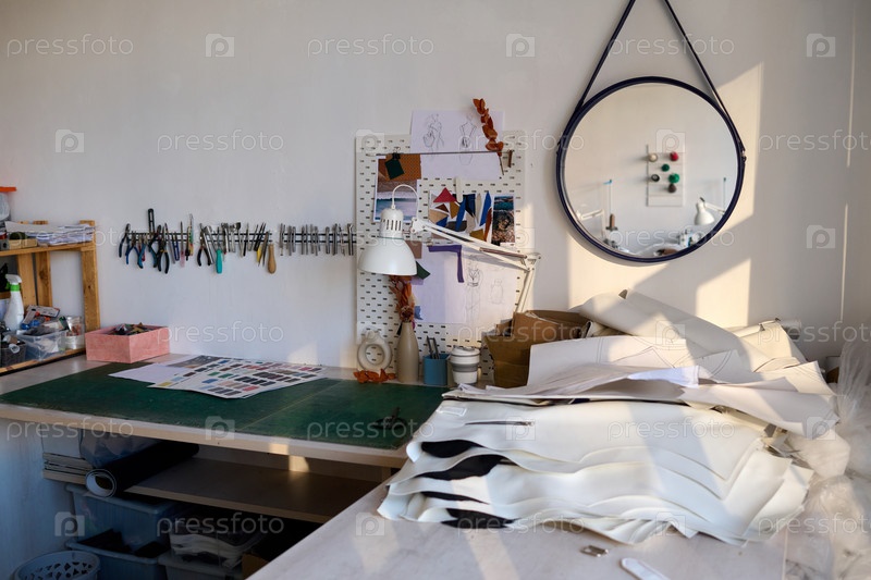 Уголок просторной мастерской самозанятого кожевенника