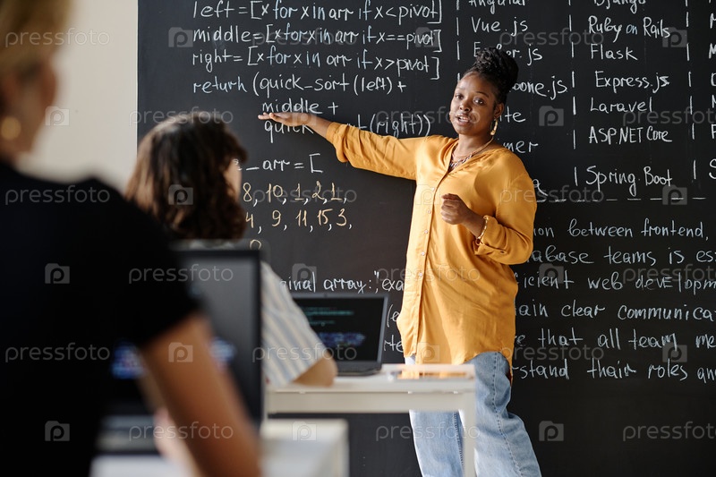 Учитель объясняет материалы ученикам в классе