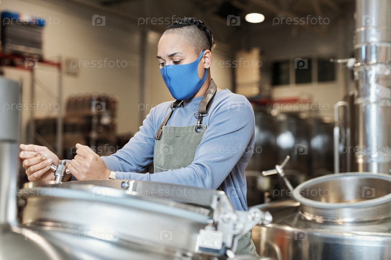 Женщина-пивоварь на заводе по производству пива