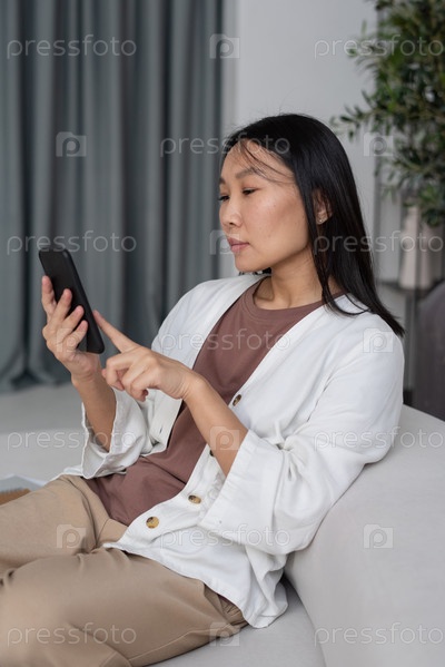 Молодой современный фрилансер или сотрудник, прокручивающий смартфон