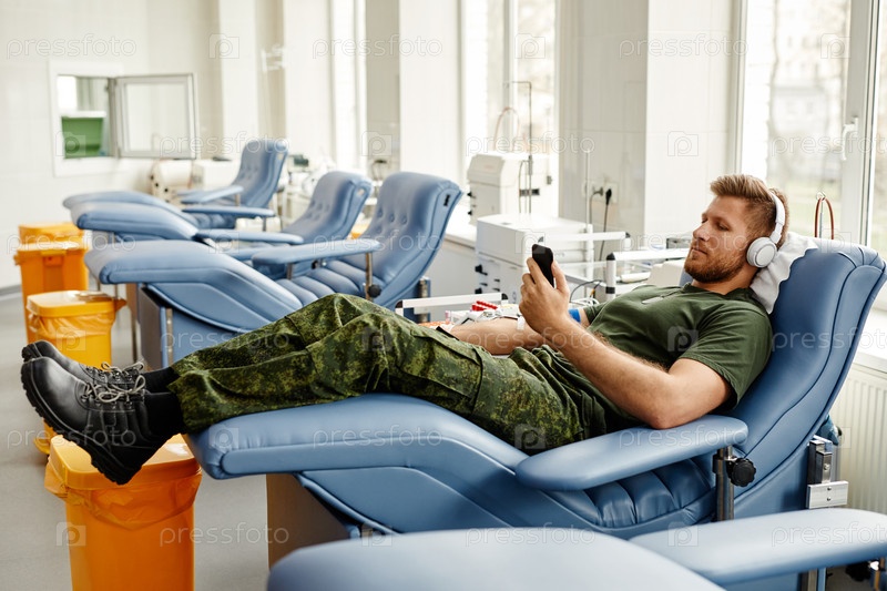 Военный сдает кровь в клинике