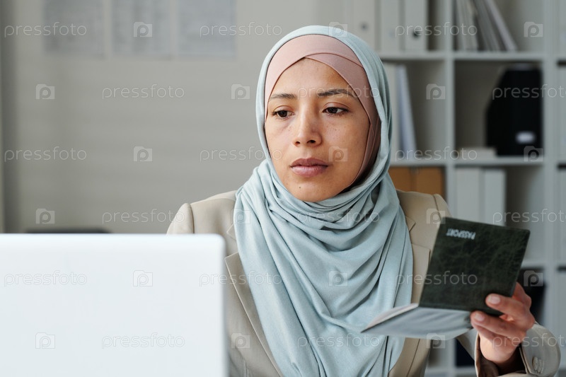 Женщина, работающая с паспортной информацией