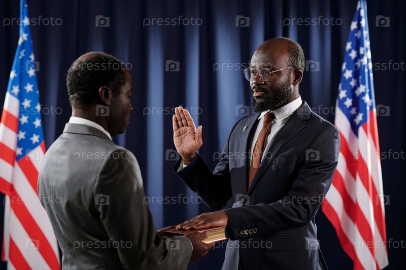 Молодой уверенный в себе президент Соединенных Штатов, дающий присягу