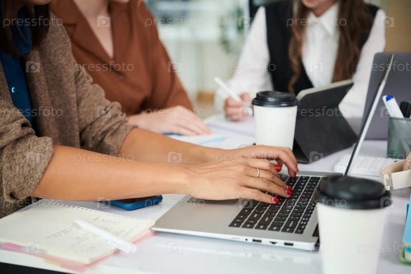 Деловая женщина, работающая на ноутбуке в офисе