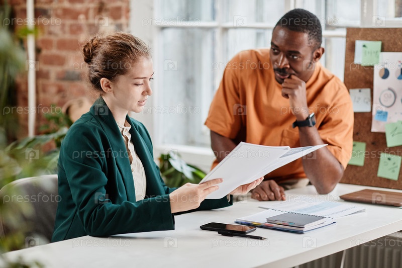 Молодой уверенный в себе экономист или адвокат, проверяющий документацию