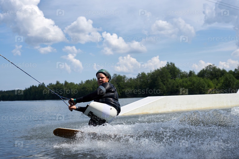 Акционный снимок спортсмен с инвалидностью Wakeboarding на воде