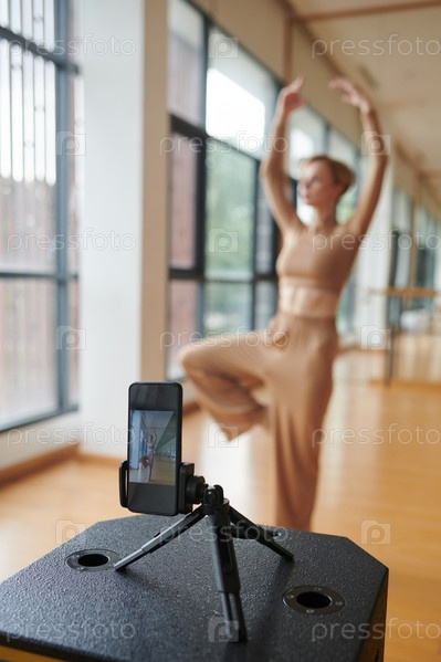 Танцовщица снимает себя, выступая