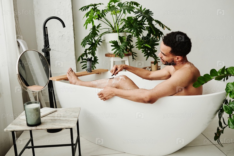 Мужчина брит ноги в ванной