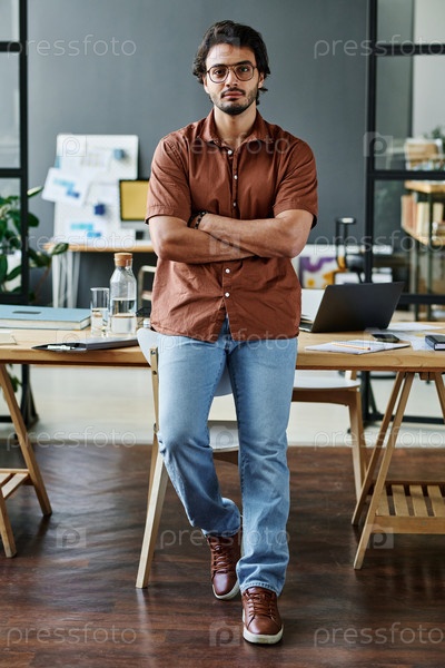 Молодой уверенный бизнесмен в умной повседневной одежде и очках