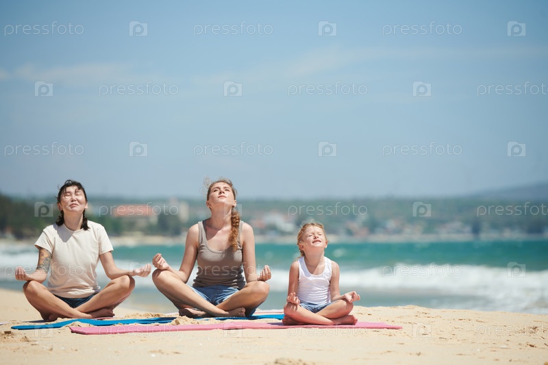 Люди, медитирующие на пляже
