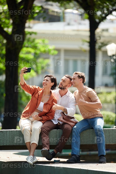 Женщина, делающая селфи с друзьями