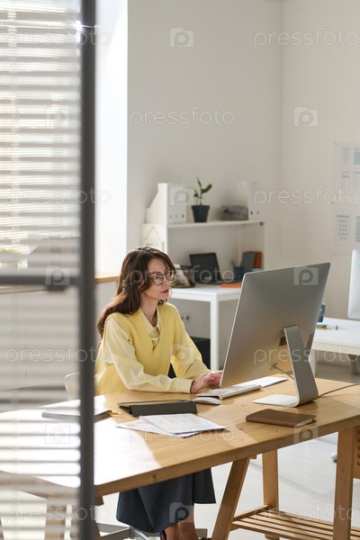 Деловая женщина, работающая на компьютере в офисе