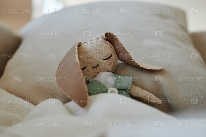 Маленькая игрушка, лежащая на кровати