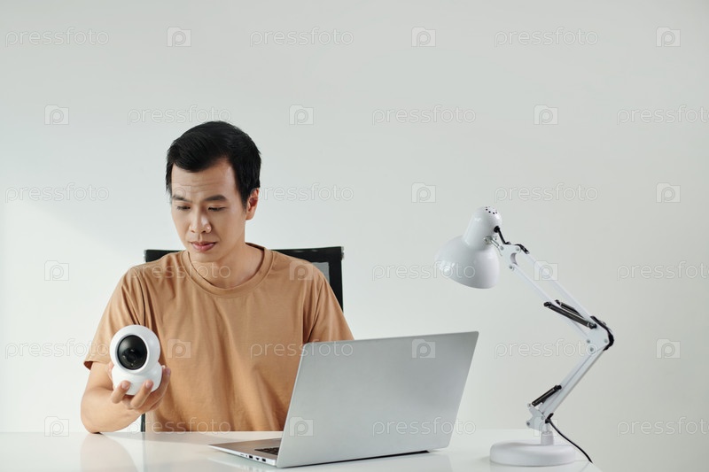 Установка камеры видеонаблюдения мужчина