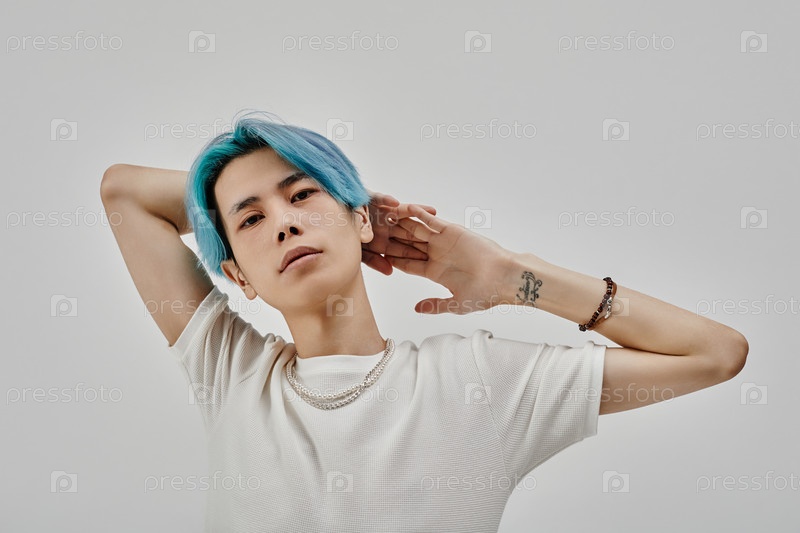 Азиат с голубыми волосами