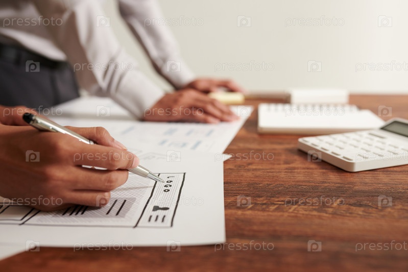 Дизайнер рисует Wireframe веб-сайта UI