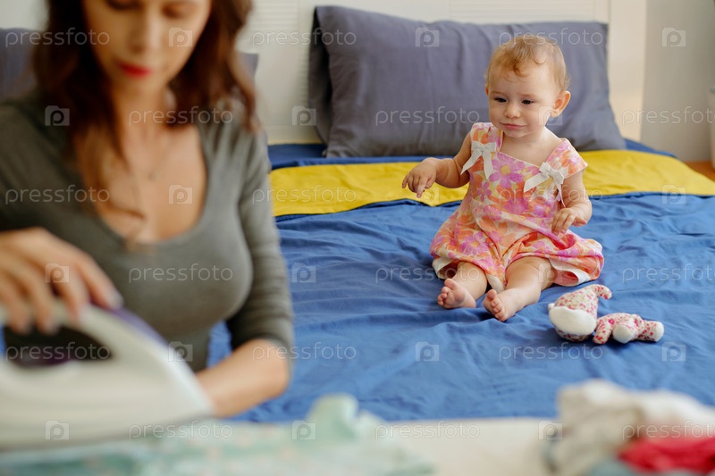 Маленькая девочка играет на кровати