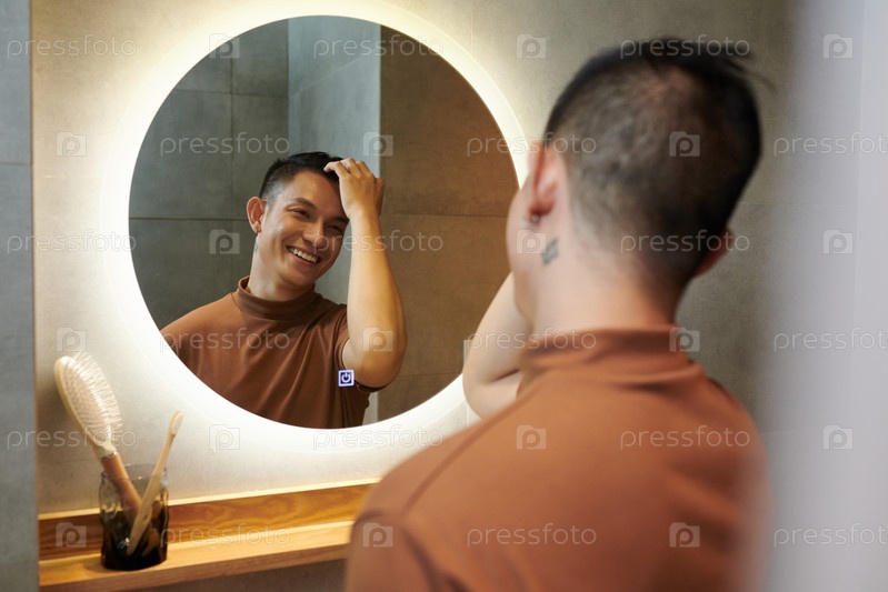 Глядя на мужчину в зеркале ванной