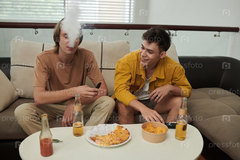 Молодые мужчины курят дома
