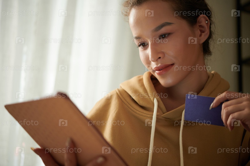 Женщина, использующая планшетный компьютер для онлайн-покупок