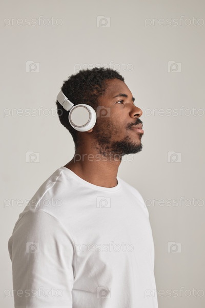 Чернокожий мужчина в наушниках против белых