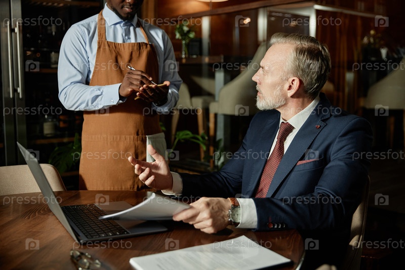 Бизнесмен делает порядок в ресторане