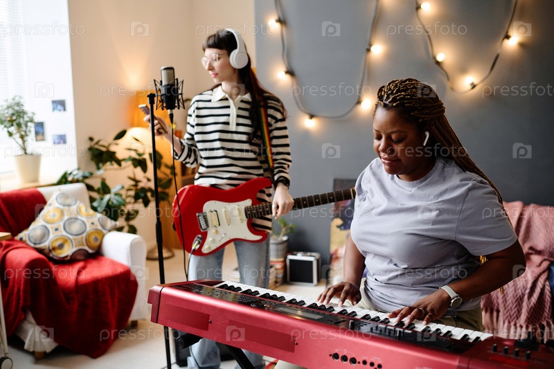 Женщины, записывающие песню в студии
