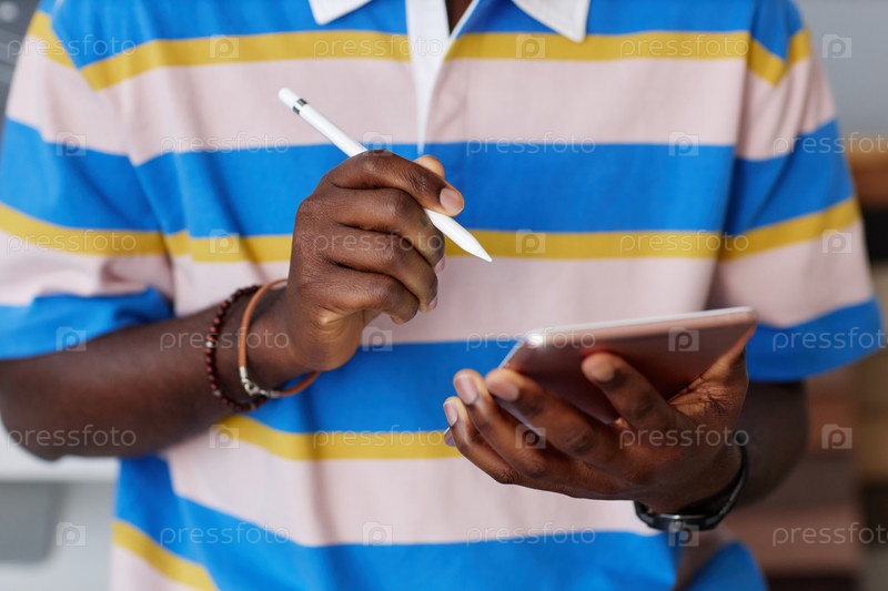 Дизайнер делает заметки на цифровом планшете