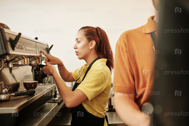 Кофе-шоп Бариста, делающий капучино