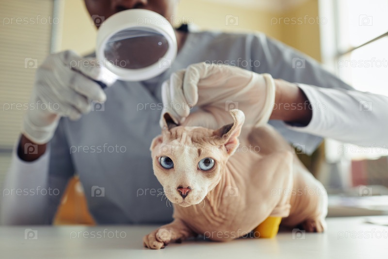 Голубоглазый кот на медицинском осмотре
