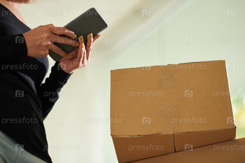 Женщина, проверяющая приложение для доставки