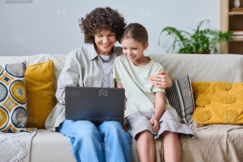 Женщина, использующая ноутбук со своей дочерью
