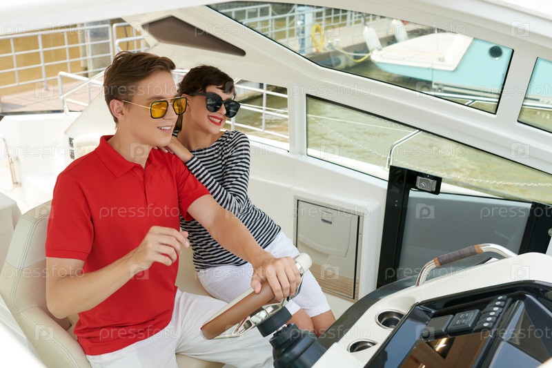 Пара, наслаждающаяся морской поездкой