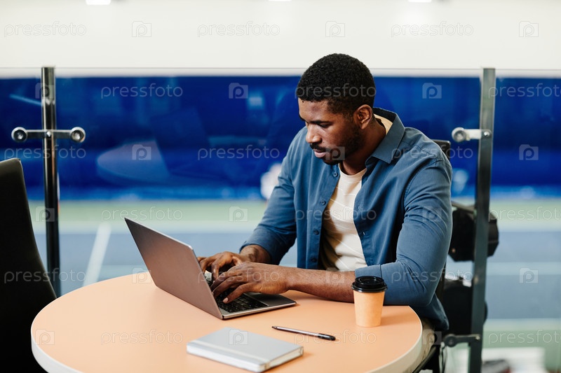 Человек, использующий ноутбук в спортивном клубе