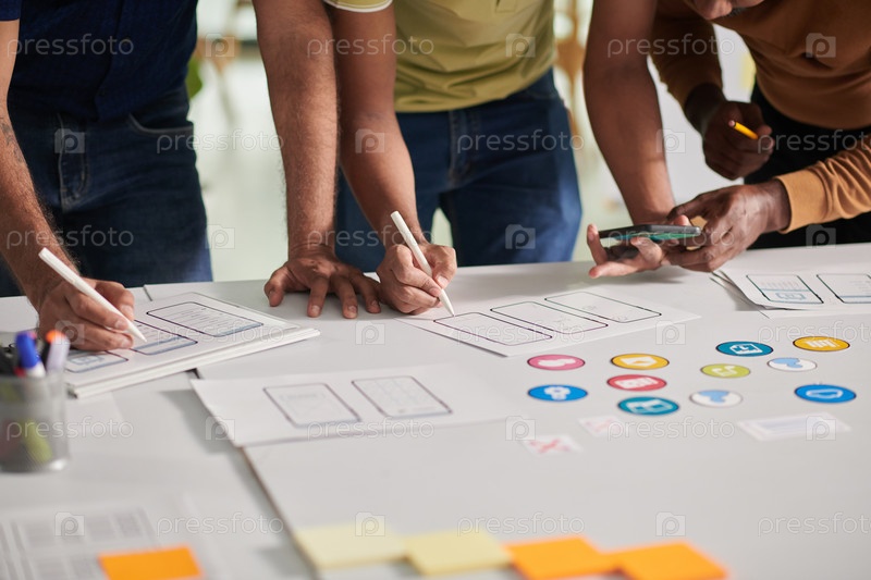 Дизайнеры, работающие над дизайном интерфейсов мобильных приложений