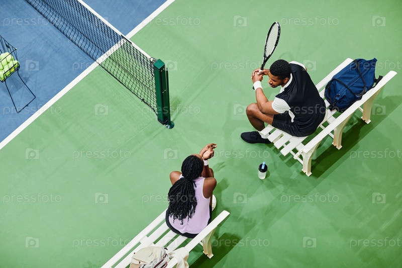 Молодые люди на теннисном корте Top View Young