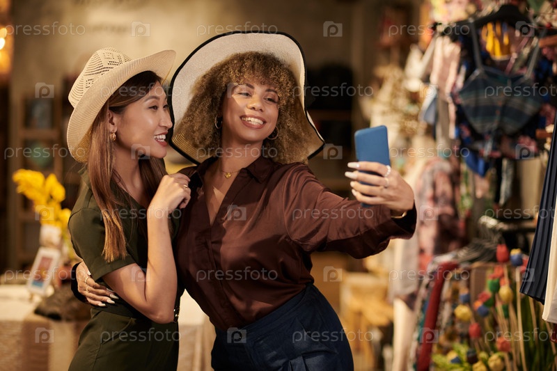 Счастливая женщина делает селфи с другом