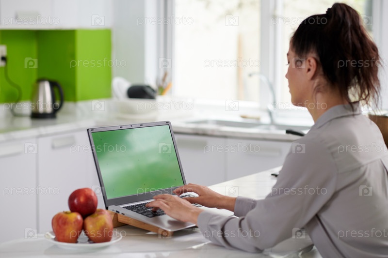 Молодая современная женщина-креативный дизайнер или программист, печатающая на клавиатуре ноутбука