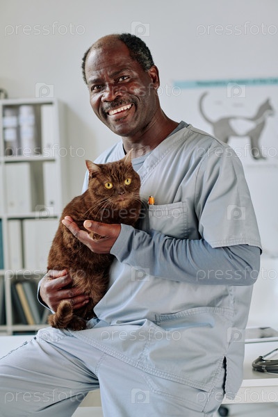 Ветеринар с африканской домашней кошкой
