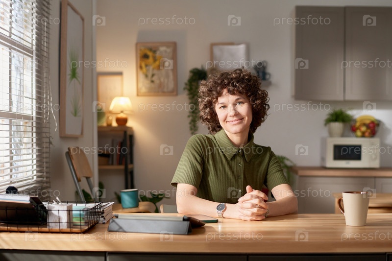 Молодая женщина сидит на кухне