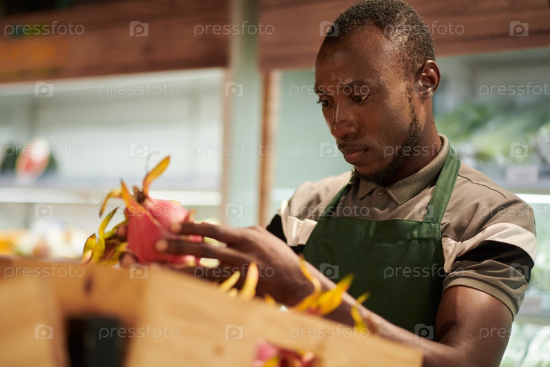Работник, проверяющий магазин Dragon Fruits Store