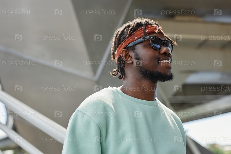 Минимальный портрет молодого чернокожего мужчины в одежде уличного стиля