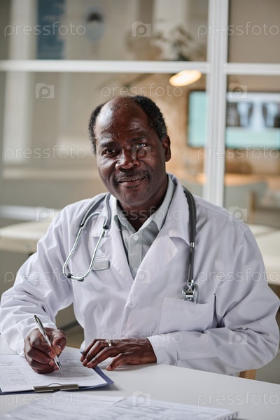 Африканский педиатр-мужчина, работающий в офисе