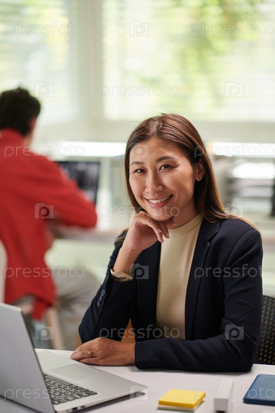 Деловая женщина, работающая на ноутбуке